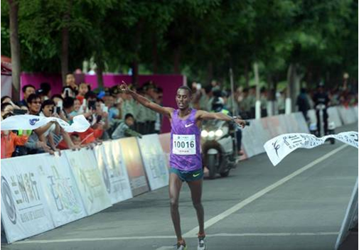 埃塞俄比亞選手阿亞勒·沃爾德·喬治斯率先沖過終點(diǎn),以2小時(shí)10分10秒的成績(jī)獲得男子全程冠軍。