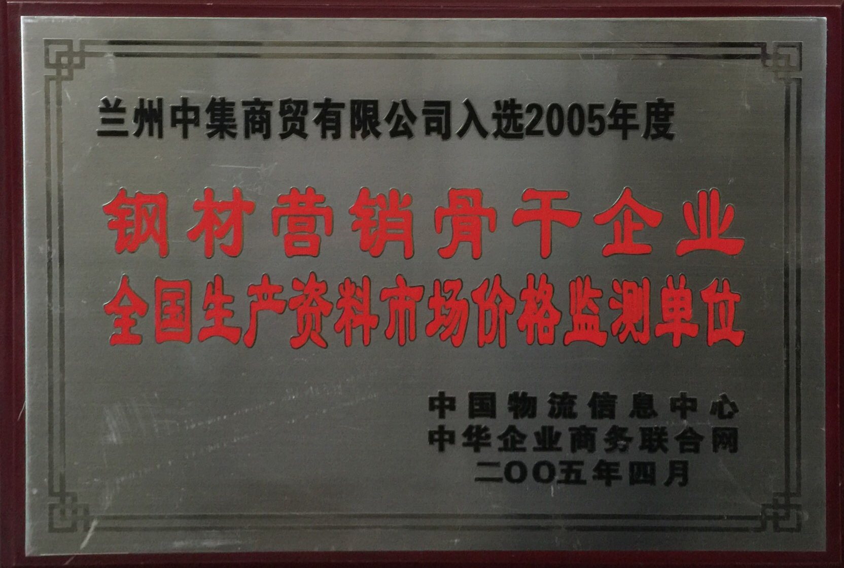 2005年度鋼材營銷骨干企業(yè)·全國生產(chǎn)資料市場(chǎng)價(jià)格監(jiān)測(cè)單位