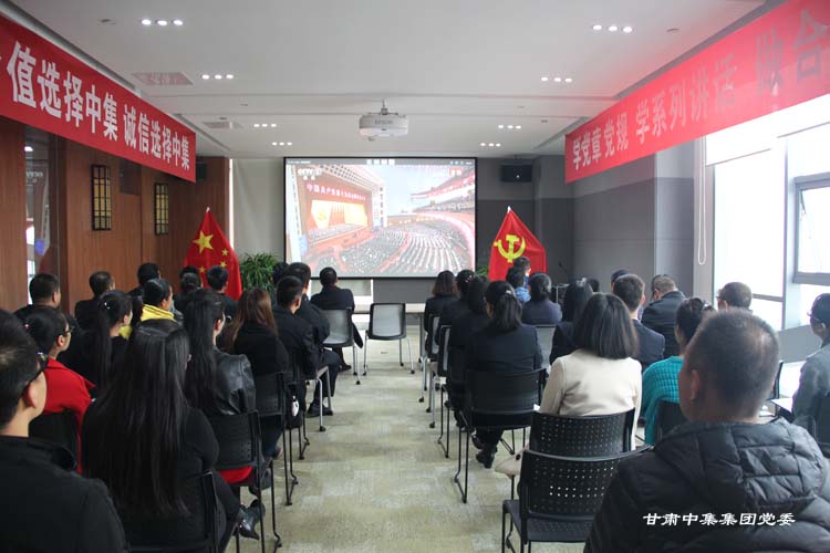 10月18日上午9時,中國共產黨第十九次全國代表大會在北京隆重開幕。甘肅中集實業集團有限公司黨委組織集團公司黨委下屬五個黨支部全體黨員、入黨積極分子及十余家分公司中高層管理人員收看開幕實況直播。