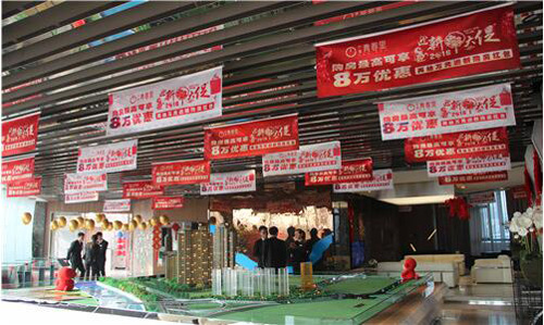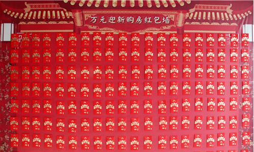 墻頂上吊下來金光燦燦的金蛋,充滿著喜慶;凡認籌客戶即可現場砸金蛋,領取家電大禮;同時可以抽取最高18888元的購房紅包(代金券)。