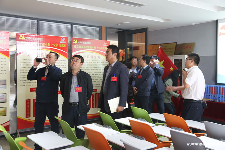 2017年9月28日上午,全省非公經(jīng)濟(jì)黨建工作現(xiàn)場(chǎng)觀摩會(huì)在中集理想國(guó)際寫字樓召開,來自全省各地、市(州)、縣(區(qū))組織部部長(zhǎng)、全省各地、市(州)、縣(區(qū))非公黨委負(fù)責(zé)同志共計(jì)50余人蒞臨甘肅中集集團(tuán)進(jìn)行現(xiàn)場(chǎng)觀摩。中共甘肅省委組織部副地級(jí)組織員周 密帶團(tuán)參加現(xiàn)場(chǎng)觀摩,中共蘭州市委組織部副部長(zhǎng)宋書明、安寧區(qū)區(qū)委書記王 方、安寧區(qū)區(qū)委常委、區(qū)委組織部部長(zhǎng)賈向紅、安寧區(qū)非公黨委副書記何健興等領(lǐng)導(dǎo)陪同參加觀摩,集團(tuán)公司黨委書記、董事長(zhǎng)周啟濤攜集團(tuán)公司黨委委員一并觀摩,黨委辦公室主任魏建峰代表集團(tuán)公司黨委向全體觀摩團(tuán)成員介紹了集團(tuán)公司黨委開展黨建工作的主要做法和取得的良好成效。