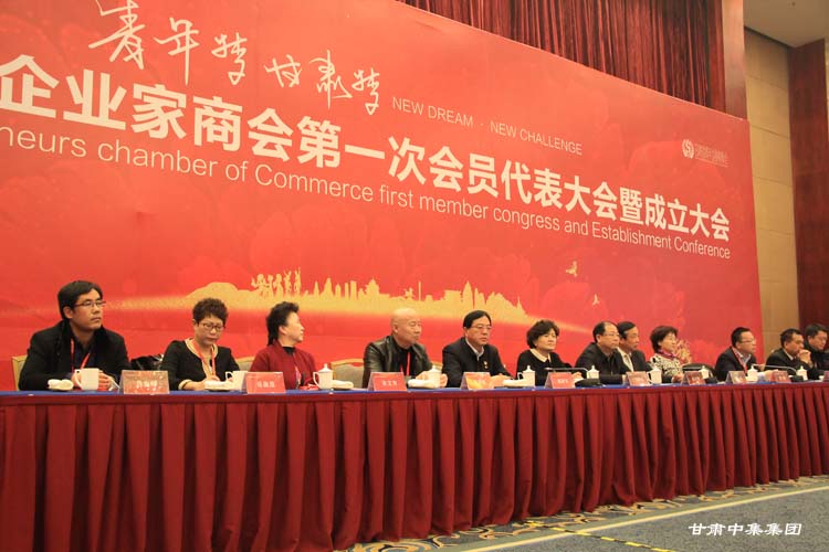 2017年12月20日上午,甘肅省青年企業家商會第一次會員代表大會暨成立大會在寧臥莊二號樓一樓多功能廳召開,甘肅省政協副主席、省工商聯主席郝遠,甘肅省委統戰部副部長、省工商聯黨組書記、常務副主席趙少智,甘肅省工商聯副巡視員兼商會工作部部長劉慶,蘭州市副市長、市工商聯主席馬彩云,甘肅省民政廳社會組織管理局主任張珺珺,甘肅省銀行業協會理事會長、中國銀行甘肅分行行長臧新軍,浦發銀行蘭州分行黨委書記、行長景紅衛等領導,以及甘肅省政府參事、甘肅省工商聯房地產業商會會長、華富集團總裁陳啟建,甘肅省工商聯副主席、潤宇國際投資有限公司董事長李雄,甘肅省工商聯副主席、甘肅省女企業家聯合會會長、蘭雅集團董事長宋艾芳,甘肅省工商聯房地產業商會副會長、甘肅伊真集團董事長張國軍等老一輩企業家,以及企業家、金融、商會和主流媒體代表500余人參加此次大會。