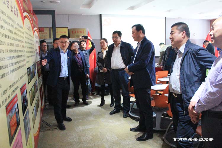 2018 年 4 月 17 日下午,天水市市委組織部副部長、市非公經濟和社會組織黨工委書記丁曉來、天水市工商局黨組成員、副局長、市非公經濟組織黨委書記聶惠仁及天水市 12 家非公企業黨組織書記一行蒞臨集團公司觀摩調研非公企業黨建工作;