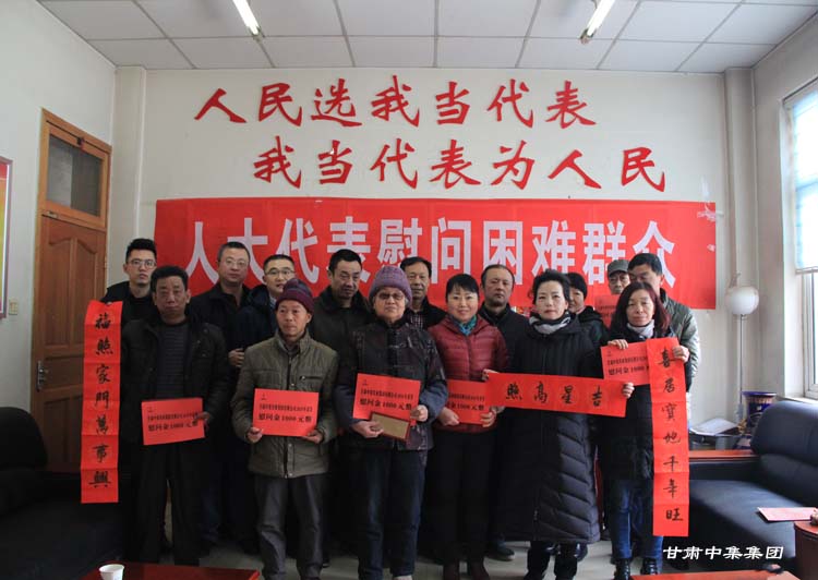2018年2月7日上午,在2018年新春佳節即將來臨之際,甘肅省慈善總會榮譽會長、安寧區人大代表、甘肅中集集團董事長周啟濤親自安排部署,并委托集團公司黨委委員魏建峰、安 康兩位同志親自前往安寧區十里店街道辦事處,在街道黨工委副書記、人大工委主任梅鵬飛等領導陪同下,開展愛心送溫暖行動,為街道10戶特困家庭送上新年的祝福和慰問金。