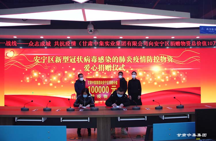 2020年2月7日上午,受甘肅中集集團黨委書記、董事長周啟濤委托,甘肅中集集團黨委副書記董廣科、黨委委員魏建峰一行前往蘭州市安寧區人民政府向安寧區新型冠狀病毒感染的肺炎疫情聯防聯控工作領導小組捐贈10萬元防疫物資,為當前疫情聯防聯控、群防群控工作貢獻力量。