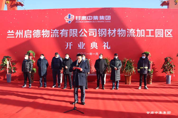 2021年1月12日上午10:18分,甘肅中集實業集團有限公司旗下蘭州啟德物流有限公司河口鋼材物流加工園區開業慶典在甘肅物產集團河口物流園隆重舉行。甘肅中集實業集團有限公司黨委書記、董事長周啟濤隆重宣布物流園開業。酒鋼集團、八一鋼鐵集團、內蒙古包鋼集團、甘肅省物產集團河口物流園、甘肅省鋼材商會、物流園轄區及公司合作伙伴等100余名領導嘉賓參加開業慶典。