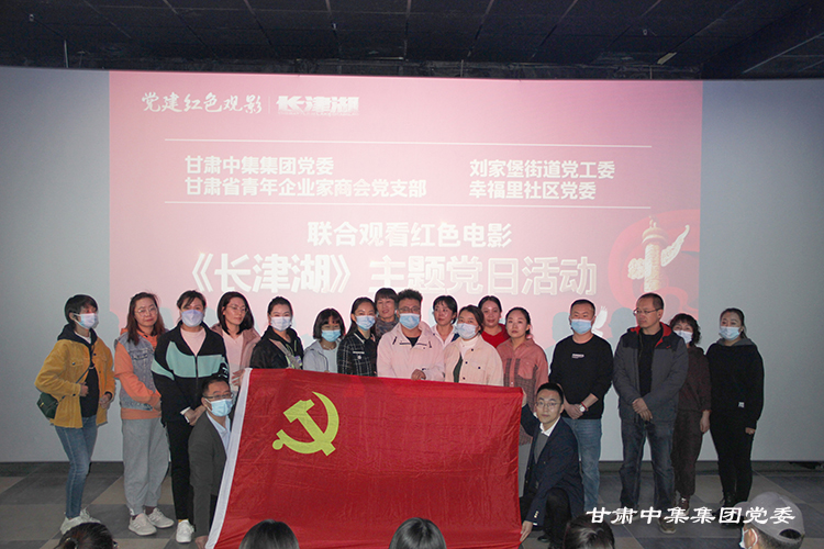 為紀念中國共產黨成立100周年,慶祝新中國成立72周年,結合黨史學習教育,同時增強集團黨委廣大黨員、入黨積極分子、公司中高層骨干管理人員的榮譽感和責任感,通過革命歷史題材影片的形式再現歷史,催人奮進、給人啟迪,更好的弘揚社會主義核心價值觀和開展好愛國主義教育。10月9日,甘肅中集集團黨委聯合劉家堡街道黨工委、幸福里社區大黨委、甘肅省青年企業家商會黨支部組織觀看紅色電影《長津湖》開展主題黨日活動。