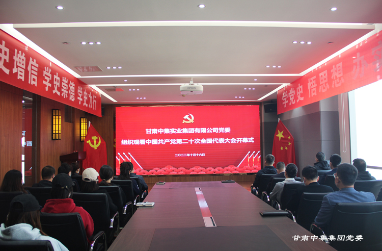 2022年10月16日上午,中國共產黨第二十次全國代表大會在北京人民大會堂隆重開幕。甘肅中集實業集團有限公司黨委書記、董事長周啟濤帶領集團黨委委員與全體黨員、入黨積極分子、中高層管理人員共同觀看黨的二十大開幕盛況,聆聽黨的二十大報告。收看現場掌聲陣陣,氣氛莊重熱烈。
